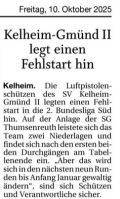 Die Luftpistolenschützen des SV Kelheim-Gmünd II legen einen Fehlstart in die 2.Bundesliga Süd hin.